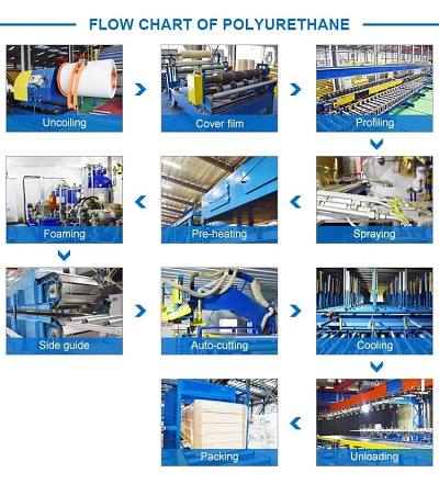 Taking polyurethane with excellent insulation performance as core material and colored steel sheet,304 stainless steel or aluminum sheet as external material, the sandwich-type board can reduce the heat conduction due to difference between internal and external temperature to achieve maximum efficiency of freezing and refrigeration system.